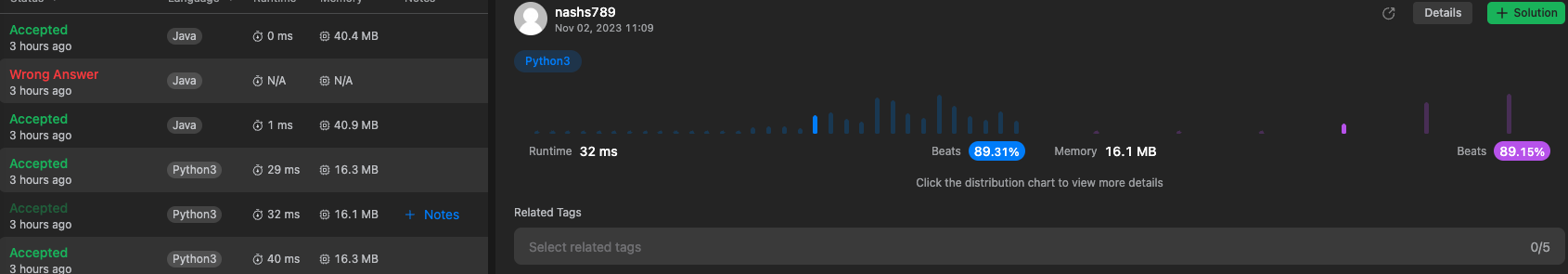 # Memory : 16.3 MB (Beats 61.42%)