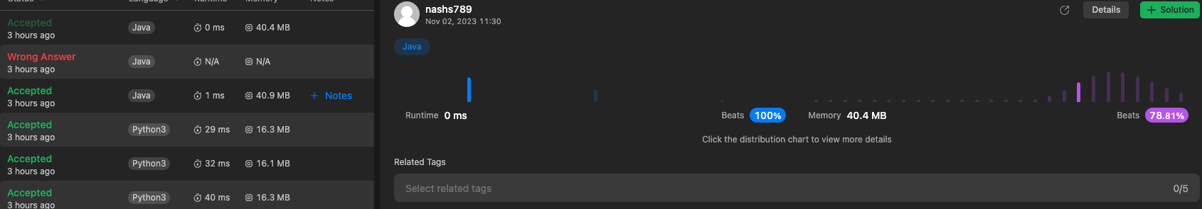 * Memory : 40.4 MB (Beats 78.81%)